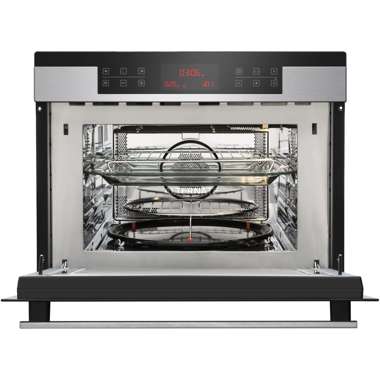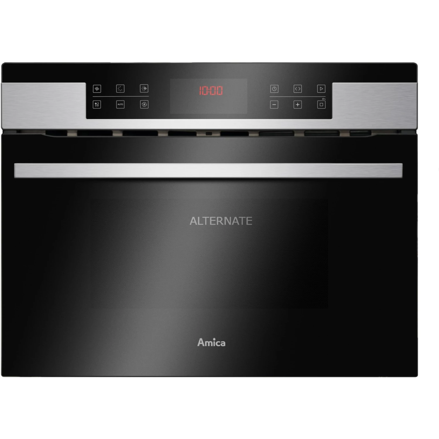 Mit dem Amica Kompakt-Einbaubackofen EBC 841 600 E mit Mikrowellenfunktion in Edelstahl im X-type Design können Nahrungsmittel schnell und einfach erwärmt oder knusprig überbacken werden. Der EBC 841 600 E bietet ein Garraumvolumen von 44 Litern, vier Backofenfunktionen und 13 Automatik Back-/ Bratprogramme. Daneben können die Backofenfunktionen mit der Mikrowellenfunktion kombiniert werden. Dank der CoolDoor3 Leichtreinigungstür und dem Edelstahl Innenraum ist die Reinigung für den Anwender besonders einfach. Der EBC 841 600 E verfügt über einen digitalen Sensor Timer sowie eine Kindersicherung. Zudem hat der EBC 841 600 E einen emaillierten Drehteller mit 360 mm Durchmesser.