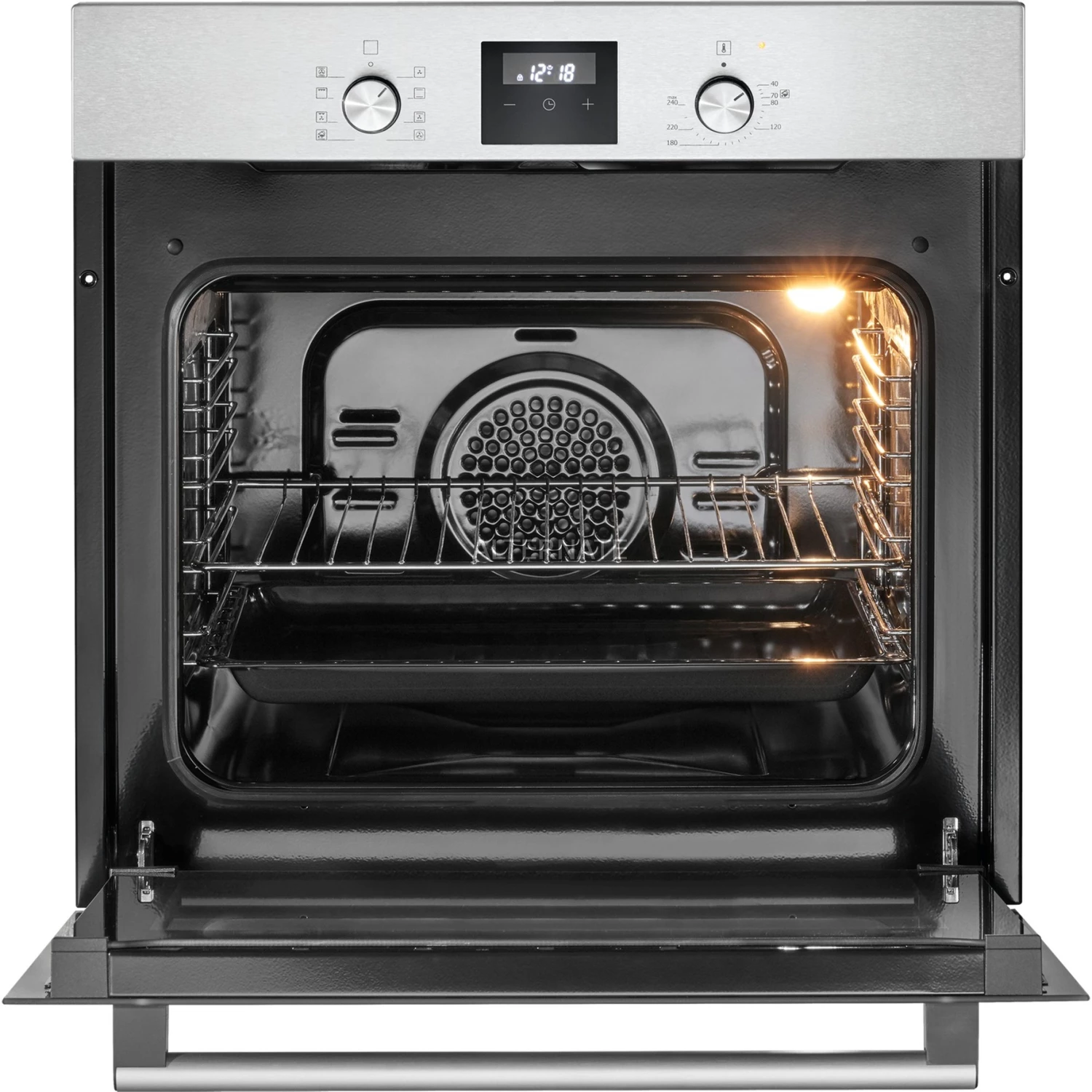 Der Einbau-Backofen Bomann EBO 7906 ist mit einem Backraumvolumen von 60 Litern optimal für jede Küche geeignet. Über die Regler und Touch Control-Steuerung lassen sich die Heizarten komfortabel auswählen und die Temperatur von 40°C bis 240°C einstellen. Mit der Backofenbeleuchtung und dem großen Sichtfenster bleiben beim EBO 7906 auch bei geschlossener Tür alle Speisen immer im Blick. Dank der Dampfreinigungs-Funktion ist die Reinigung besonders leicht. Die Backofenwahlschalter können zur Absicherung gegen ungewollte Bedienung in der Bedienblende versenkt werden.