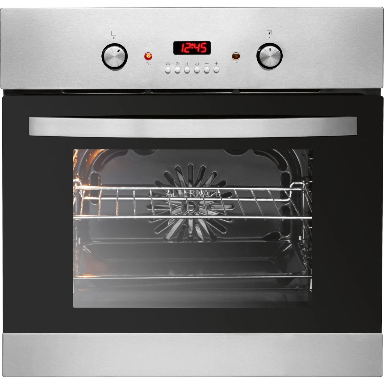 Der Einbau-Backofen Bomann EBO 9612 IX ist mit einem Backraumvolumen von 53 Litern optimal für jede Küche geeignet. Über versenkbare Drehregler lassen sich die Heizarten komfortabel steuern und die Temperatur von 50°C bis 250°C regulieren. Das rote LED-Display gibt Auskunft über Uhrzeit, Startvorwahl sowie Restlaufzeit. Die Kontrollleuchten zeigen den Betrieb und das Erreichen der Backofen-Temperatur an. Der Garraum ist dank der emaillebeschichteten Backofenwände leicht zu reinigen. Mit der Backofenbeleuchtung und dem Sichtfenster bleiben beim EBO 9612 IX auch bei geschlossener Tür alle Speisen immer im Blick.