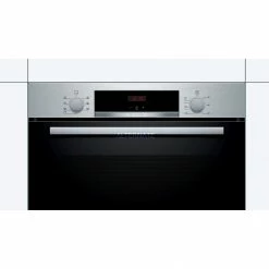 Der Einbau-Backofen Bosch HBA513BS1 in Edelstahl ist mit einem Nutzinhalt von 71 Litern optimal für jede Küche geeignet und lässt sich als Einbaugerät nahezu überall platzieren. Fünf Heizarten, wie die 3D Heißluft für perfekte Ergebnisse dank optimaler Wärmeverteilung auf bis zu drei Ebenen gleichzeitig, lassen sich bequem über versenkbare Bedienknebel einstellen. Die Bedienung mit rotem LCD-Display ist dank direktem Zugriff auf Zeitfunktionen besonders einfach. Die Granit-Emaillebeschichtung der Backofeninnenwände erleichtert die Reinigung und Pflege des Geräts. In puncto Sicherheit bleiben beim HBA513BS1 mit eingebauter Kindersicherung und Kühlgebläse keine Wünsche offen.