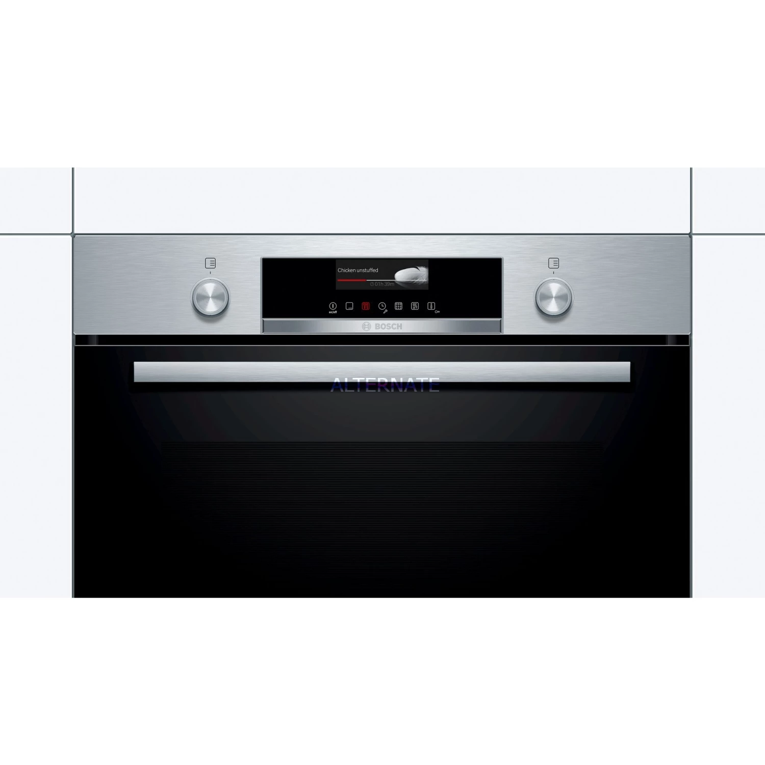 Der Backofen Bosch HBG579BS0 ist mit einem Nutzinhalt von 71 Litern optimal für jede Küche geeignet und lässt sich als Einbaugerät nahezu überall platzieren. Die Bedienung des HBG579BS0 mit TFT-Display gestaltet sich dank Anzeige mit Klartext und Symbolen besonders einfach. 13 verschiedene Heizarten bieten modernen Back- und Bratkomfort. 3D-Heißluft sorgt für optimale Backergebnisse auf bis zu 3 Ebenen gleichzeitig dank der intelligenten Wärmeverteilung. Die AutoPilot 40 Automatikprogramme bereiten die Speisen automatisch perfekt zu. Mit der Schnellaufheizung wird die gewünschte Backtemperatur schneller erreicht. Dank automatischer Pyrolyse-Selbstreinigungsfunktion ist der Putzaufwand minimal. Die gedämpfte Backofentür sorgt für ein sanftes, leises Öffnen und Schließen der Tür. In puncto Sicherheit glänzt der HBG579BS0 mit einer sehr geringen Türtemperatur, einer Kindersicherung, einer Sicherheitsabschaltung, einer Restwärmeanzeige und einigem mehr.