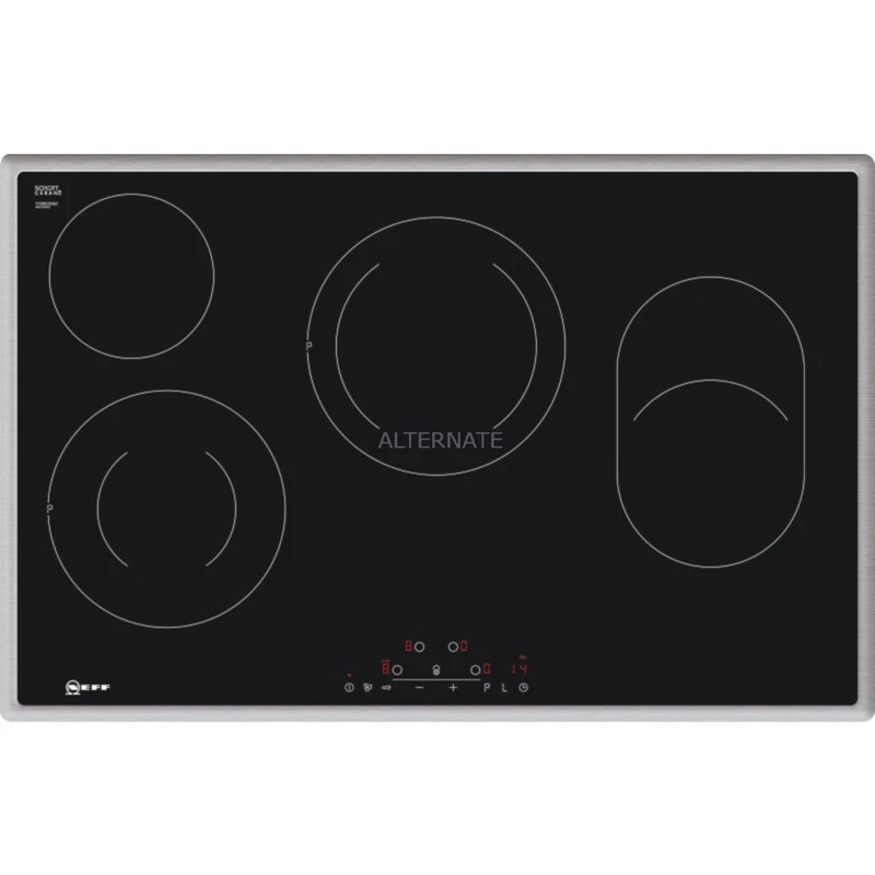 Das Backofen-Set Neff XB18 überzeugt mit einem Backraumvolumen von 71 Litern und schickem Design. Das Set besteht aus dem Einbau-Backofen B1DCA0AN0 und dem Elektro-Kochfeld T18BD36N0. Fünf Heizarten stehen zur Verfügung und mit dem CircoTherm-Heißluftsystem ist Backen, Braten und Kochen auf bis zu drei Ebenen gleichzeitig möglich. Das Elektro-Kochfeld mit Glaskeramik-Oberfläche und Designrahmen in Edelstahl bietet vier Kochzonen. Dank Zweikreis-Kochzonen und Bräterzone ist auch Platz für große Töpfe und Pfannen. Mit der TouchControl-Bedienung lässt sich das Kochfeld besonders bequem per Fingertipp steuern. Die optimierte Powerstufenfunktion ermöglicht ein flexibleres, noch schnelleres Ankochen. In puncto Sicherheit überzeugt das Kochfeld des XB18 mit einer 2-stufigen Restwärmeanzeige je Kochzone und der Backofen mit einem Kühlgebläse.