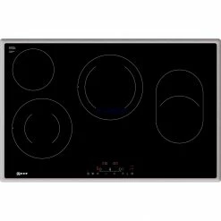 Das Backofen-Set Neff XB38 überzeugt mit einem Backraumvolumen von 71 Litern und schickem Design. Das Set besteht aus dem Einbau-Backofen B1CCC0AN0 und dem Elektro-Kochfeld T18BD36N0. Fünf Heizarten stehen zur Verfügung und mit dem CircoTherm-Heißluftsystem ist Backen, Braten und Kochen auf bis zu drei Ebenen gleichzeitig möglich. Das Elektro-Kochfeld mit Glaskeramik-Oberfläche und Designrahmen in Edelstahl bietet vier Kochzonen. Dank Zweikreis-Kochzonen und Bräterzone ist auch Platz für große Töpfe und Pfannen. Mit der TouchControl-Bedienung lässt sich das Kochfeld besonders bequem per Fingertipp steuern. Die optimierte Powerstufenfunktion ermöglicht ein flexibleres, noch schnelleres Ankochen. In puncto Sicherheit überzeugt das Kochfeld des XB38 mit einer Restwärmeanzeige je Kochzone und der Backofen mit einem Kühlgebläse sowie einer individuell einstellbaren Kindersicherung.