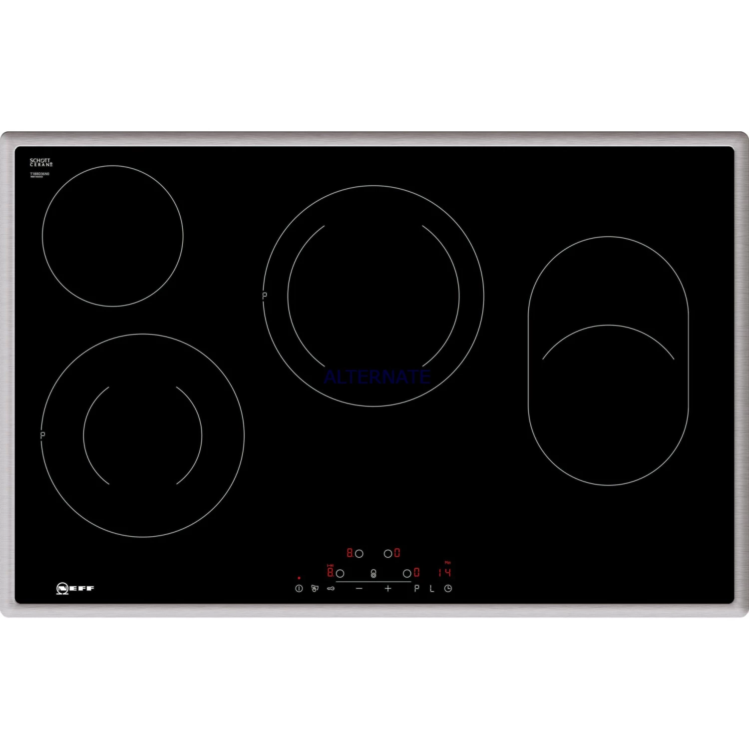 | Display/Anzeige | Backofen:, LED, Display, (rot), Kochfeld:, Digitale, Anzeige, der, Kochstufen, Energieverbrauchsanzeige |
