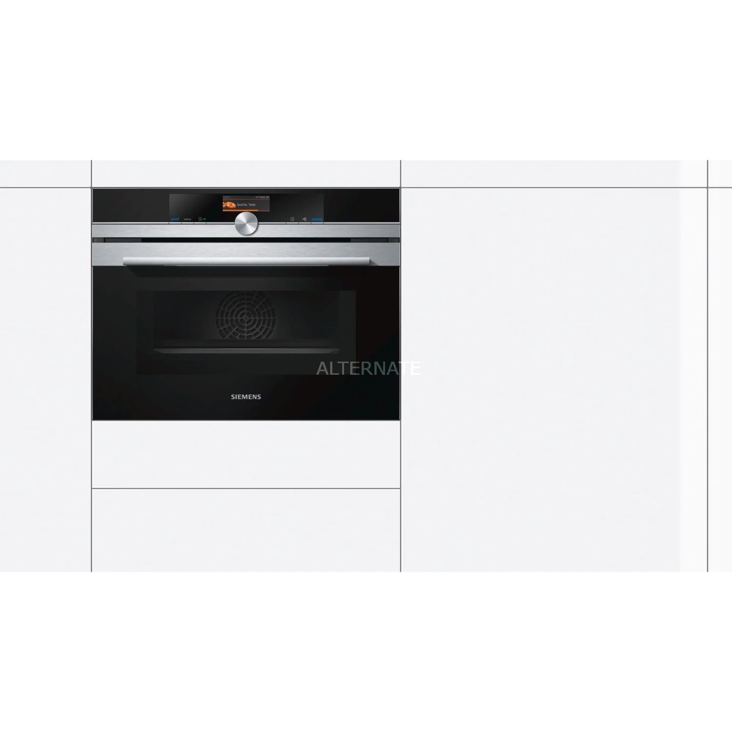 Der Backofen Siemens CM676G0S1 ist ein Kompaktbackofen mit Mikrowellenfunktion und einer Größe von 45 Litern. Mittels lightControl-Bedienkonzept können 13 Beheizungsarten oder fünf Mikrowellenleistungsstufen ausgewählt werden. In puncto Sicherheit glänzt der CM676G0S1 mit einer Kindersicherung, einer kühlen Ofenfront, einer Sicherheitsabschaltung und einer Restwärmeanzeige.