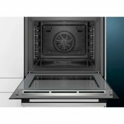 Der Einbau-Backofen Siemens HR578GBS6 iQ500 mit Dampfunterstützung ist mit einem Nutzinhalt von 71 Litern optimal für jede Küche geeignet und lässt sich als Einbaugerät nahezu überall platzieren. Acht verschiedene Heizarten bieten modernen Back- und Bratkomfort. Das lightControl-Bedienkonzept ermöglicht eine intuitive Steuerung dank des beleuchteten Bedienknebels. 3D-Heißluft sorgt für optimale Backergebnisse auf bis zu 3 Backblechen dank innovativer Wärmeverteilung. Die 30 cookControl Automatikprogramme ermöglichen beste Ergebnisse. Mit der Schnellaufheizung wird die gewünschte Backtemperatur schneller erreicht und dank coolStart Funktion ist bei Tiefkühl-Gerichten kein Vorheizen mehr nötig. Dank activeClean, der Selbstreinigungsautomatik/Pyrolyse kann der Innenraum mühelos gereinigt werden. Die Backofentür mit softMove sorgt für ein sanftes Öffnen und Schließen. In puncto Sicherheit glänzt der HR578GBS6 mit einer geringen Türtemperatur und einer Kindersicherung. Mit der Home Connect-Funktion kann man den HR578GBS6 von überall über Smartphone oder Tablet steuern.