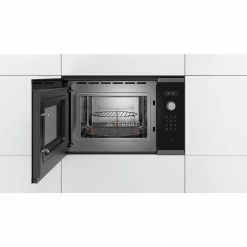 Die Einbau-Mikrowelle Bosch BEL554MS0 mit Grillfunktion überzeugt mit schickem Design und umfangreichen Funktionen. Die Bosch BEL554MS0 bietet 25 Liter Garraumvolumen. Die Mikrowelle verfügt über eine Leistung von 900 Watt und der Grill über 1200 Watt. Über den intuitiven Bedienring lassen sich fünf Leistungsstufen einstellen und mit acht Automatikprogrammen bleiben für den Anwender keine Wünsche mehr offen. Daneben verfügt die BEL554MS0 über eine LED-Innenbeleuchtung und durch das Sichtfenster bleibt das Gargut immer gut im Blick. In puncto Sicherheit bietet die BEL554MS0 zudem eine Sicherheitsabschaltung, einen Türkontaktschalter sowie ein Kühlgebläse.