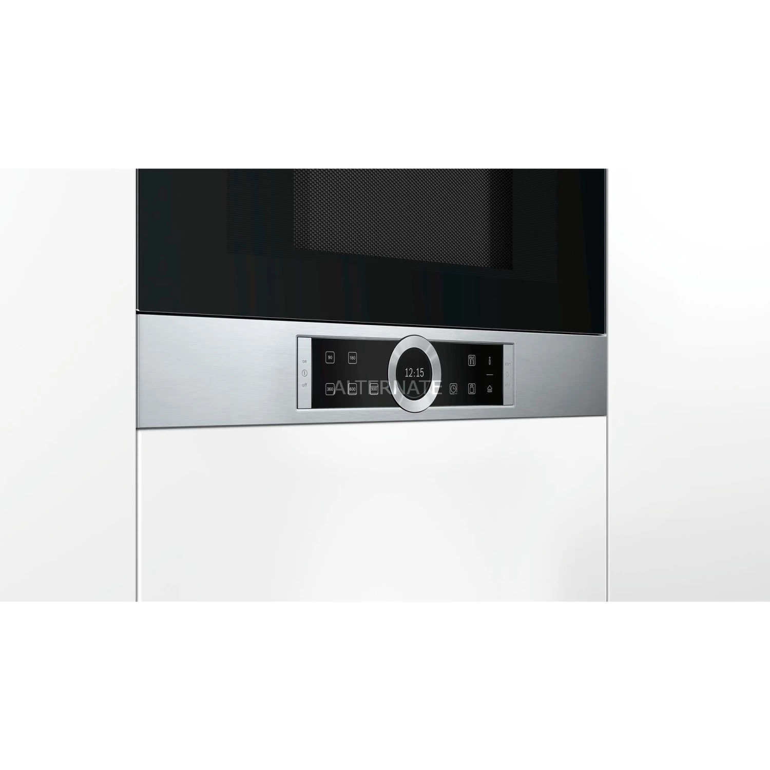 Die Einbau-Mikrowelle Bosch BFL634GS1 ist optimal für die Single-Küche geeignet und überzeugt mit einem Nutzinhalt von 21 Litern im Garraum. Über die TouchControl-Bedienung und den intuitiven Bedienring lassen sich fünf Leistungsstufen einstellen und die Garzeit regeln. Durch das Sichtfenster der BFL634GS1 bleibt das Gargut immer gut im Blick.