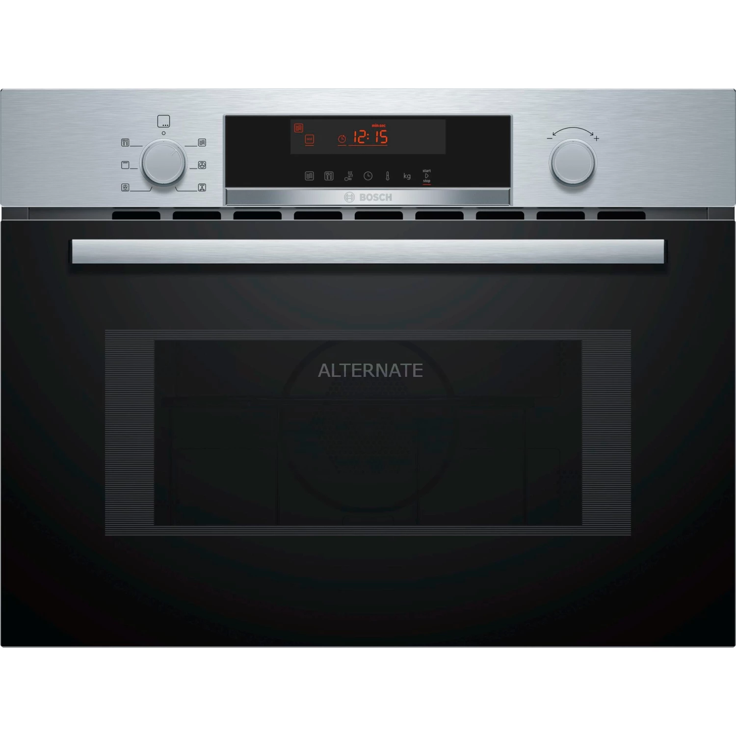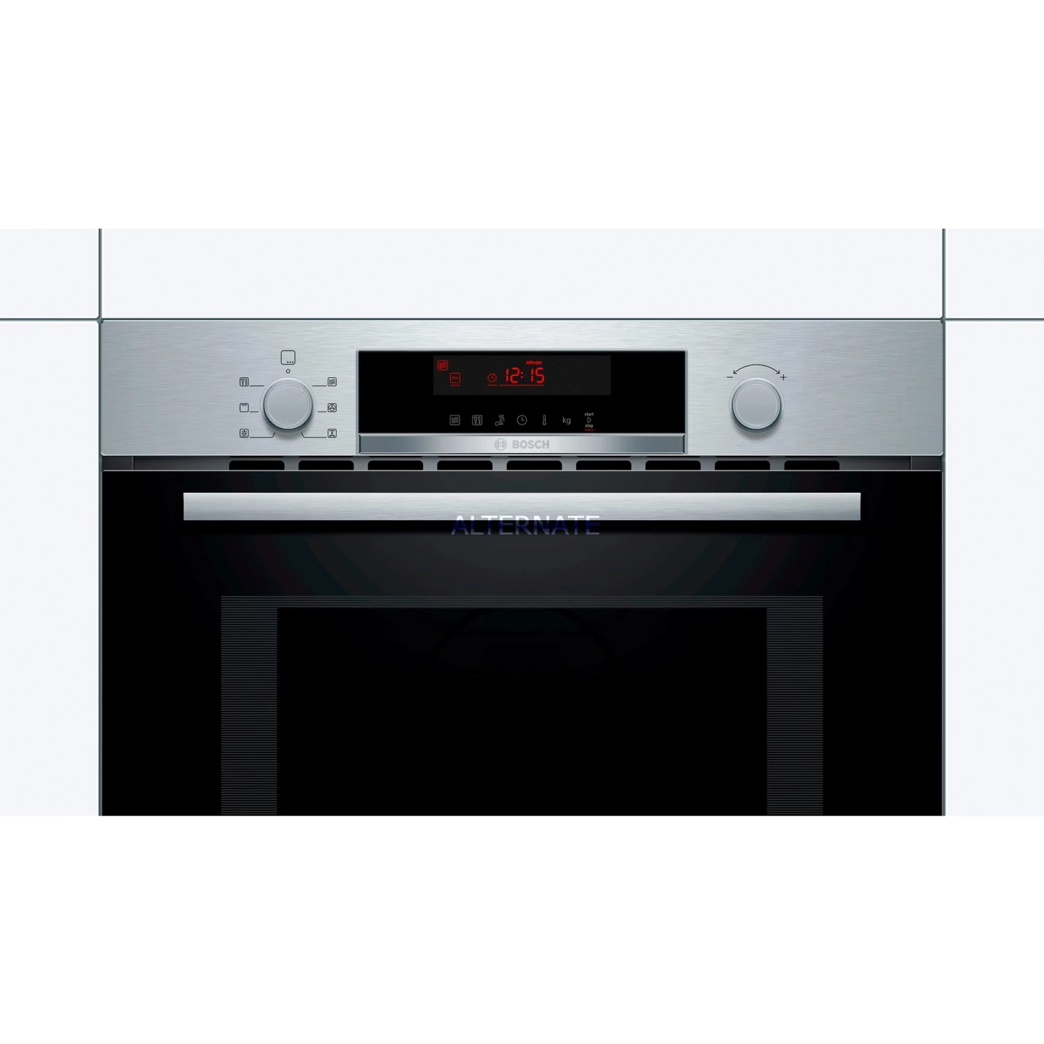 Mit der Bosch Einbau-Mikrowelle CMA583MS0 für die 45 cm Nische lassen sich Speisen extraschnell auftauen, aufwärmen und perfekt zubereiten. Heißluft sorgt für perfekte Ergebnisse auf einer Ebene dank optimaler Wärmeverteilung. Dank 15 voreingestellten Automatikprogrammen gelingt jedes Gericht perfekt. Die Bedienung mit rotem LCD-Display ist dank direktem Zugriff auf Zusatzfunktionen, Vorschlagstemperatur und ergänzender Temperaturanzeige besonders einfach. Die Versenkknebel ermöglichen eine leichte Reinigung der Bedienoberfläche. Der Innenraum aus Edelstahl lässt sich dank glatter Oberflächen und keinen scharfen Kanten ebenfalls leicht reinigen.