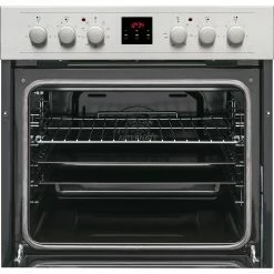 Das Einbau-Herdset Sharp K-62D19IM0-EU ermöglicht das Kochen und Backen einer Vielfalt an verschiedenen Gerichten. Der Einbau-Herd mit elektronischer Steuerung stellt einen Garraum mit einem Nutzinhalt von 69 Litern zur Verfügung und verfügt über neun verschiedene Heizarten. Dabei lässt sich die Temperatur durch die sechs Knebel besonders schnell und einfach steuern. Das Kochfeld mit vier Elektro-Kochzonen, davon eine 2-fach Zone, zeichnet sich zudem durch das hochwertige Schott-Glas aus, wodurch eine lange Lebensdauer gewährleistet wird. In puncto Sicherheit überzeugt das Kochfeld mit Restwärmeanzeige, Überhitzungsschutz, Kindersicherung, Tastensperre und automatischer Abschaltfunktion.