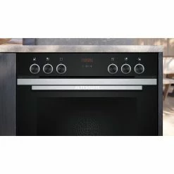 Das Einbau-Herdset Siemens EQ311KA0ZM besteht aus dem Herd HD214ABS0 und dem Kochfeld EA64RGNA1E. Der Garraum umfasst 71 Liter und bietet 8 Heizarten zum Kochen, Backen und Garen. Die 3D-Heißluft sorgt für optimale Backergebnisse auf bis zu drei Backblechen dank innovativer Wärmeverteilung und mit der Schnellaufheizung gelangt man schneller zur gewünschten Backtemperatur. Die hochwertige Emaille-Beschichtung ermöglicht in Kombination mit der Vollglas-Innentür und den versenkbaren Drehreglern eine leichte und komfortable Reinigung des EQ311KA0ZM. Das Glaskeramik Kochfeld mit vier Elektro-Kochzonen bietet dank Zweikreis-Kochzone und zuschaltbarer Bräterzone auch für große Pfannen, Töpfe und Bräter genügend Platz. In puncto Sicherheit lässt das EQ311KA0ZM mit Kindersicherung, Restwärmeanzeige, Kühlgebläse und geringer Türtemperatur keine Wünsche offen.