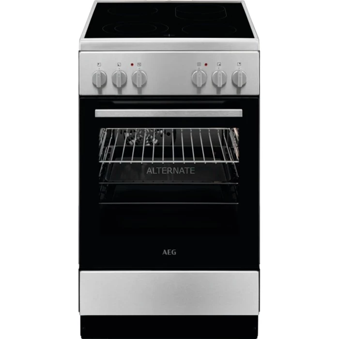 Der Standherd AEG CCB54483BM stellt ein Garraumvolumen von 57 Litern sowie vier schnellaufglühende Elektro-Kochzonen aus Glaskeramik, davon eine Zweikreis-Kochzone und eine zuschaltbare Bräterzone, zum Kochen und Backen leckerer Gerichte zur Verfügung. Der vielseitige, leicht ausziehbare Geschirrwagen nimmt Zubehör, wie Backbleche, Roste, Sonderzubehör oder Pfannen, auf und nutzt so den Stauraum unterhalb des Backofens optimal. Dank der zerleg- und aushängbaren Leichtreinigungstür sowie den glatten Innenwänden aus CLEAN-Emaille ist der CCB54483BM besonders pflegeleicht. In puncto Sicherheit überzeugt der CCB54483BM mit einer 4-fachen Restwärmeanzeige.