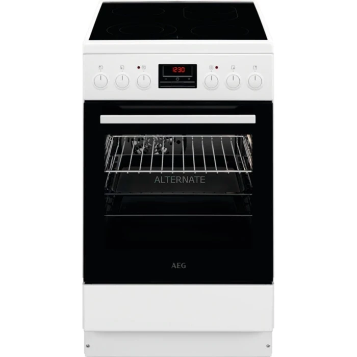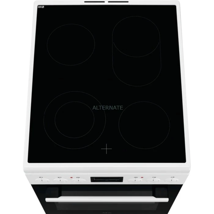 Der Standherd AEG CCB54483BW stellt ein Garraumvolumen von 57 Litern sowie vier schnellaufglühende Elektro-Kochzonen aus Glaskeramik, davon eine Zweikreis-Kochzone und eine zuschaltbare Bräterzone, zum Kochen und Backen leckerer Gerichte zur Verfügung. Der vielseitige, leicht ausziehbare Geschirrwagen nimmt Zubehör, wie Backbleche, Roste, Sonderzubehör oder Pfannen, auf und nutzt so den Stauraum unterhalb des Backofens optimal. Das Timer-Display bietet eine komplette Übersicht über den Status des Gerichts. Dank der zerleg- und aushängbaren Leichtreinigungstür sowie den glatten Innenwänden aus CLEAN-Emaille ist der CCB54483BW besonders pflegeleicht. In puncto Sicherheit überzeugt der CCB54483BW mit einer 4-fachen Restwärmeanzeige.