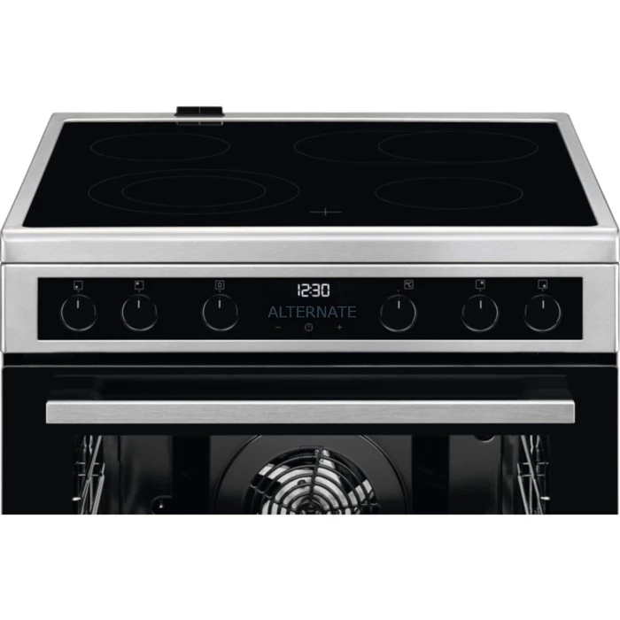 Der Standherd AEG CCB6445BBM stellt ein großzügiges Garraumvolumen von 73 Litern sowie vier schnellaufglühende Elektro-Kochzonen aus Glaskeramik, davon eine Zweikreis-Kochzone und eine zuschaltbare Bräterzone, zum Kochen und Backen leckerer Gerichte zur Verfügung. Der vielseitige, leicht ausziehbare Geschirrwagen nimmt Zubehör, wie Backbleche, Roste, Sonderzubehör oder Pfannen, auf und nutzt so den Stauraum unterhalb des Backofens optimal. Dank der zerleg- und aushängbaren Leichtreinigungstür sowie den glatten Innenwänden aus CLEAN-Emaille ist der CCB6445BBM besonders pflegeleicht. In puncto Sicherheit überzeugt der CCB6445BBM mit einer 4-fachen Restwärmeanzeige und einem Kühlgebläse.