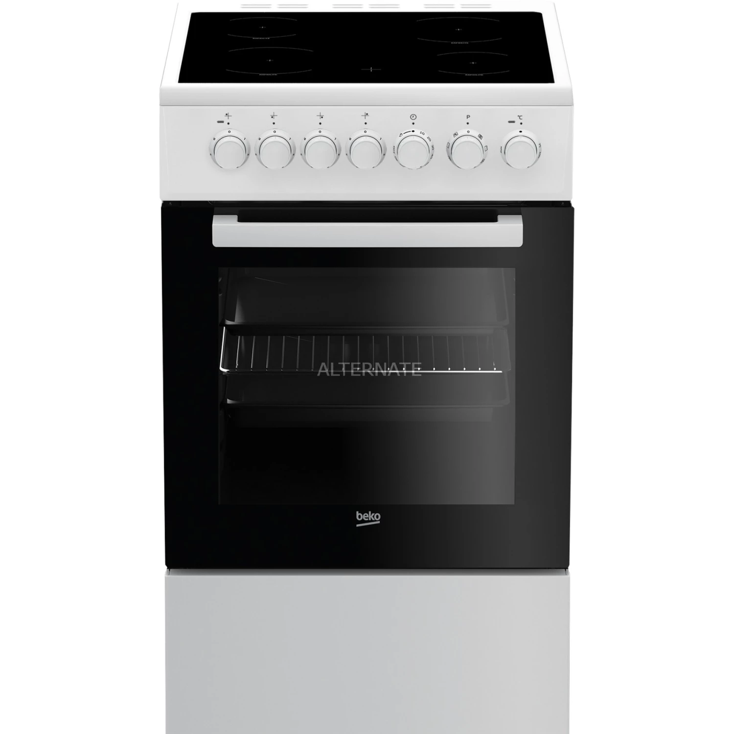 Das Herdset Beko FSM57100GW ist 50 cm breit und als Standgerät flexibel platzierbar. Der Garraum bietet einen Nutzinhalt von 55 Litern und verfügt über sieben Heizarten. Das Elektro-Kochfeld mit Glaskeramik-Oberfläche besitzt vier Kochzonen mit Restwärmeanzeige. Die Vollglas-Innentür ist leicht zu reinigen und die Schublade im Sockel bietet eine praktische Möglichkeit zum Verstauen von Backblech und Grillrost. Das FSM57100GW verfügt zudem über eine Zeitschaltuhr und ist in die Energieeffizienzklasse A eingestuft.