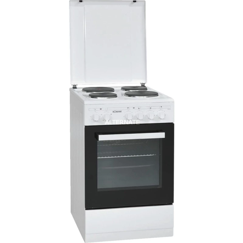 Der Standherd Bomann EH 561 ist mit einem Nutzinhalt von 48 Litern und seiner kompakten Breite von 50 cm optimal für jede Küche geeignet. Das Kochfeld bietet vier Elektro-Kochzonen aus Gusseisen, davon eine Blitzkochzone. Im Garraum bleiben alle Speisen dank Backofenbeleuchtung und großem Sichtfenster auch bei geschlossener Tür immer im Blick. In puncto Sicherheit überzeugt der EH 561 mit Kontrollleuchten für Ofen und Kochfeld.