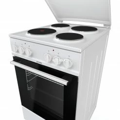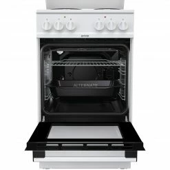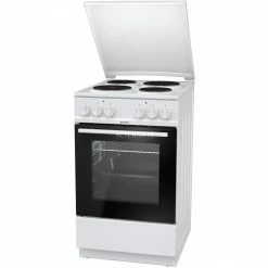 Der Standherd gorenje EC 5121 WH in Weiß ist mit einem Nutzinhalt von 74 Litern optimal für jede Küche geeignet. Die emaillierte Kochmulde bietet vier Elektro-Kochzonen, davon eine Blitzkochzone, mit Wrasenabzug nach hinten. Verschiedene Heizarten machen das Kochen und Backen für angehende Köche zu einer Leichtigkeit und die AquaClean-Selbstreinigungstechnik ermöglicht eine mühelose Reinigung des SupremeAnthrazit Emaille-Backraums. Dank der aushängbaren Vollglas-Backofentür des EC 5121 WH sowie der integrierten Backofenbeleuchtung bleiben alle Speisen auch bei geschlossener Tür immer im Blick.