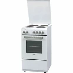 Der Standherd Sharp KF-56HNO22W-DE ist mit seinen kompakten Maßen optimal für jede Küche geeignet. Der KF-56HNO22W-DE bietet einen Nutzinhalt von 53 Litern und ein Massekochfeld mit vier Elektro-Kochzonen aus Gusseisen. Im Garraum bleiben alle Speisen dank Backofenbeleuchtung und Sichtfenster auch bei geschlossener Tür immer im Blick. Der glatte Emaille-Innenraum des KF-56HNO22W-DE ermöglicht eine einfache und schnelle Reinigung. Die herausnehmbare Innenglastür kann sogar in der Spülmaschine gereinigt werden. Die Schublade mit vier Rädern eignet sich zur Aufbewahrung von Geschirr.