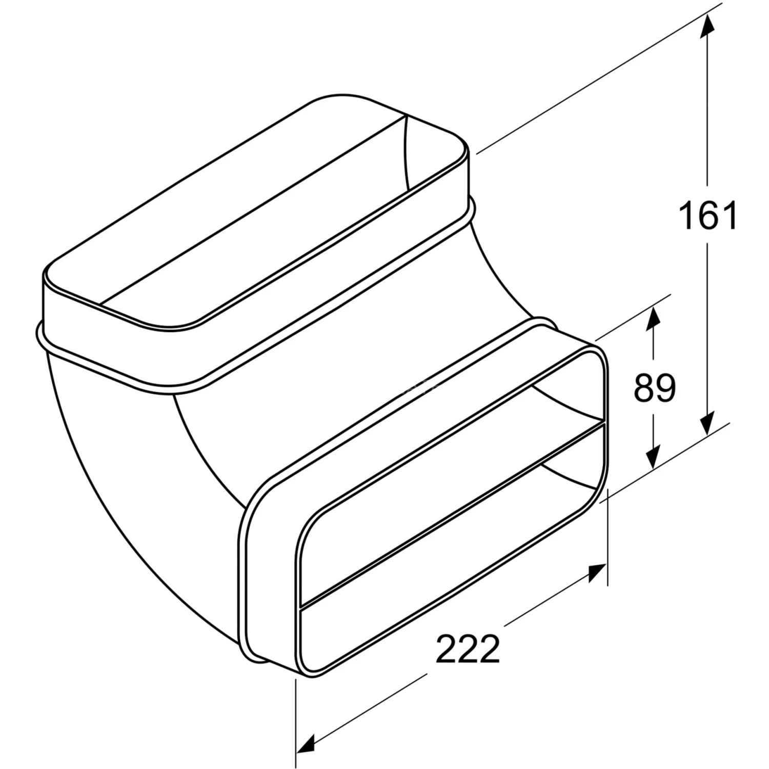 Der vertikale 90° Flachkanalbogen Z861SB2 (männlich) verfügt über einen großen Radius für Leitungen hinter der Möbelrückwand (ab 70cm Arbeitsplattentiefe). Er ist aerodynamisch optimiert für minimierte Druckverluste und maximale Durchflussrate. Er lässt sich einfach über eine Verbindungsmanschette (Sonderzubehör) mit anderen Teilen verbinden und entspricht dem Nadelflammtest (gemäß IEC 60695-5-11), der Entflammbarkeitsklasse V2 (gemäß UL94) und der Baustoffklasse B1 (DIN 4102-1).