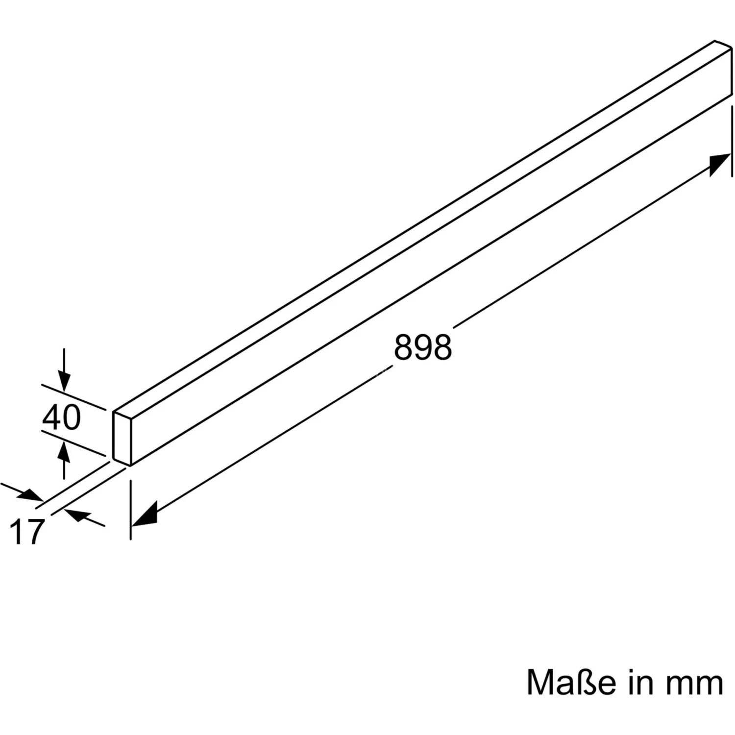 | Abmessungen | Breite:, 898, mm, x, Höhe:, 40, mm, x, Tiefe/Länge:, 17, mm |