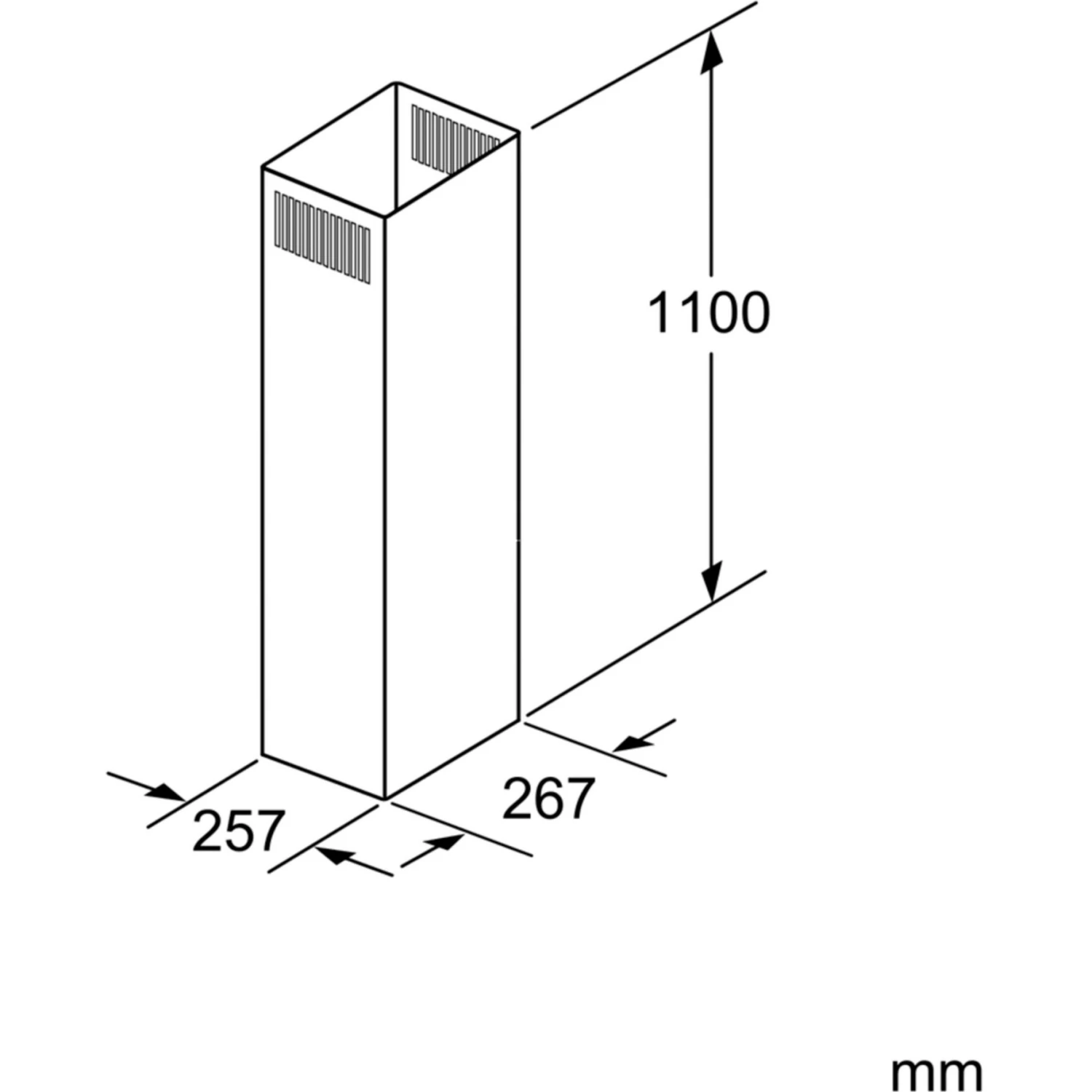 Die Siemens Kanalverlängerung LZ12275 mit Umluftschlitzen ist eine Teleskopverlängerung für Inselessen. Die Gesamtgerätehöhe kann um max. 520 mm verlängert werden. Die Verlängerung ist einsetzbar für Abluft- und Umluftbetrieb.
